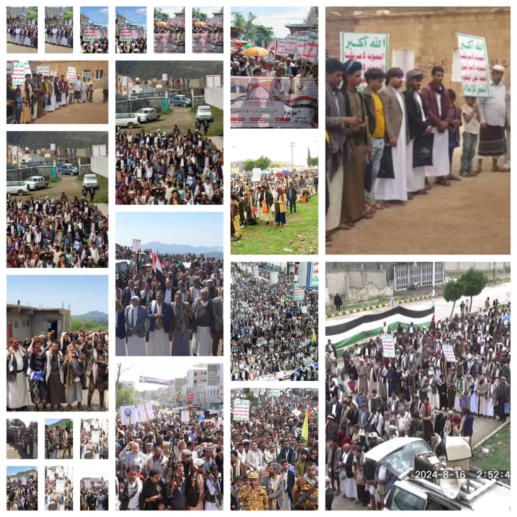 خرج أبناء محافظة إب”وسط اليمن “يوم امس الجمعة حشود كبيرة بمسيرات جماهيرية في (64) ساحة تحت عنوان “نصرة للأقصى وغزة .. الإسناد مستمر والرد قادم”