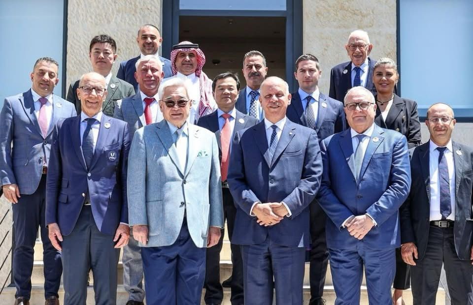 وقد ترأس الوفد الدكتور تشونغ وون تشو، رئيس الاتحاد الدولي للتايكوندو، إلى جانب عدد من الشخصيات الرياضية الدولية البارزة، من بينهم ليونر إيدير رئيس الاتحاد الدولي للرياضة الجامعية، وريكاردو فراكاري رئيس الاتحاد الدولي للبيسبول، وإدريس الهلالي، رئيس الاتحاد العربي وعضو الاتحاد الدولي للتايكوندو، وجين يونغ رئيس الاتحاد الكوري وعضو الاتحاد الدولي، وماهر مقابلة عضو الاتحاد الدولي ورئيس المنظمة الإنسانية للتايكوندو، بالإضافة إلى شداد العمري النائب الأول لرئيس الاتحاد العربي للتايكوندو، وحازم النعيمة نائب رئيس الاتحاد العربي ورئيس الاتحاد الأردني للتايكوندو.